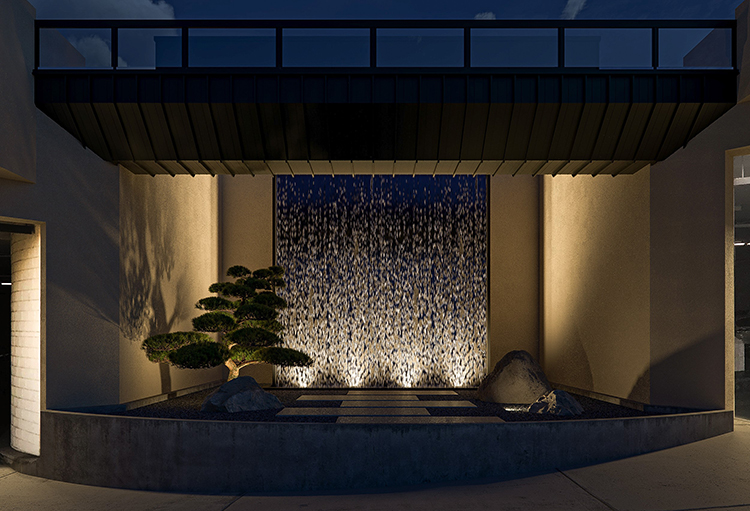 3D rendering of the previous plan , with both day and nighttime views