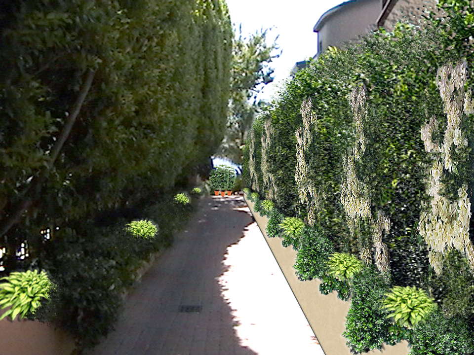 Finally, the finish rendering that will show the end result with the jasmine and white bougainvillea interlaced with the ficus hedge.