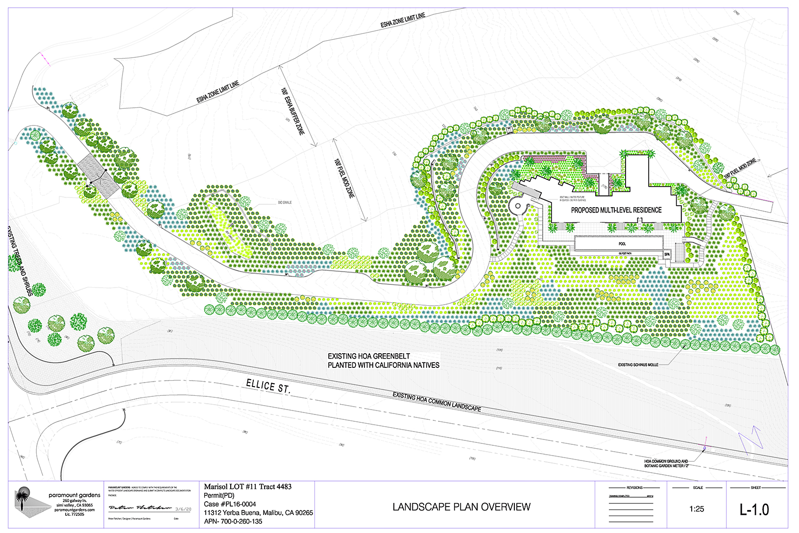 A very recent design projectfor a large property in Malibu. This design is adjacent to an Endangered Species Habitat Area (ESHA) so the plant palette is mostly California native species.