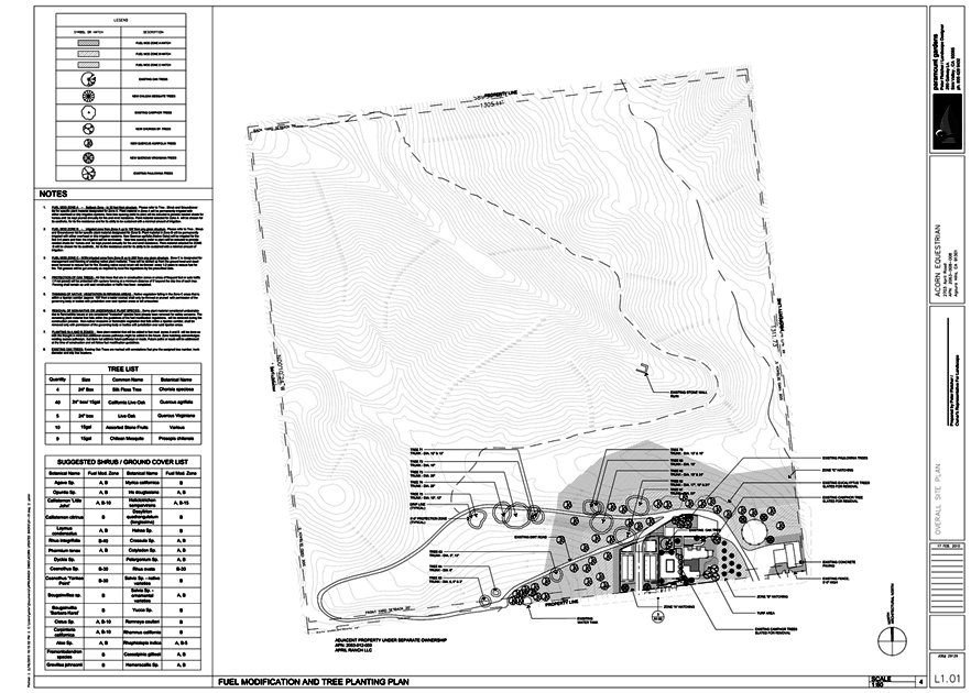 An over-all view of one half of the April ranch. This plan was submitted to the county for approval of the fuel modification and tree planting plan.