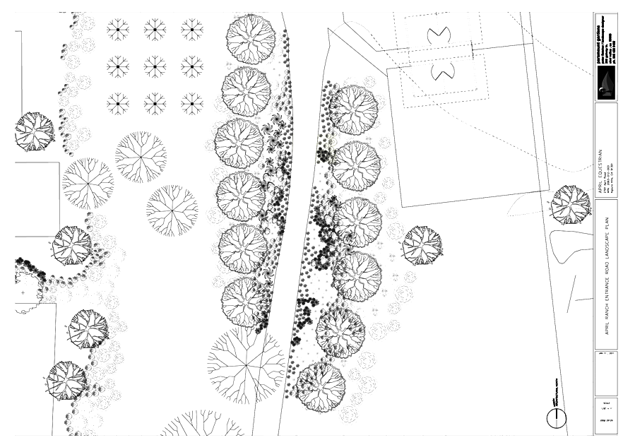 A more detailed section of the ranch showing the planting plan for part of the equestrian center.