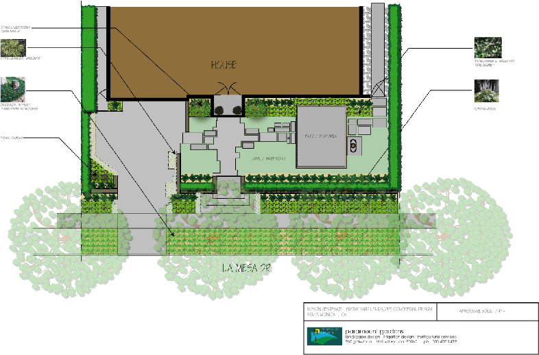 A front yard conceptual design for a modern house in Santa Monica , CA house. A simple linear design that helps accentuate the architecture of the house. With the minimalist theme we kept the plant palette to around five species.