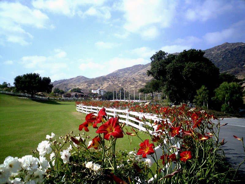 A very special daylily cultivar named ' Rojo Alto' . Over 5000 plants were used at the Hummingbird Nest Property and as you can see, they can put on quite a display. This daylily variety and many more are available at Greenwood Gardens.